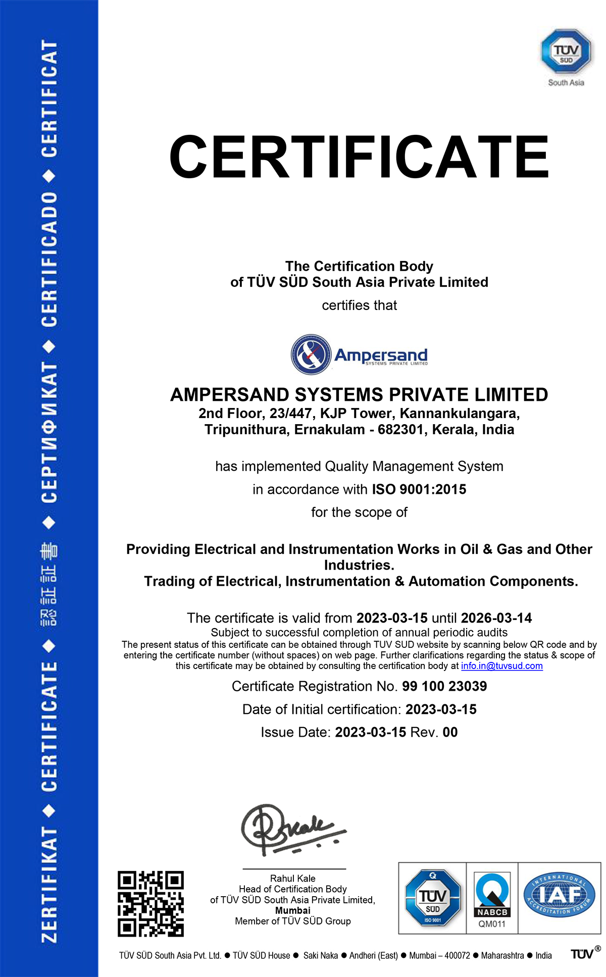 Ampersand Systems Private Limited started business in India in 2008 with the objective of providing specialized services in the field of Process Instrumentation, Automation, Calibration, Erection, Pre- commissioning, Commissioning, Maintenance, Manpower Supply, Sales and Training facilities for all industries like Oil & Gas, Refineries, Petrochemical, Fertilizers, Power & Energy, Cement, Steel, Pharma, Food industries and Breweries. Since its foundation the company has so far successfully executed many projects covering a wide range of instrumentation services. We have steadily emerged as one of the leading Instrumentation/Electrical contractor service provider in all over India. Our head office is situated at Kochi, Kerala with branch office at Mangalore and Qatar. No matter where your location is, our technical team will reach you globally. We support clients to have real time monitor, control, visualize, integrate and optimize their enterprise operations.